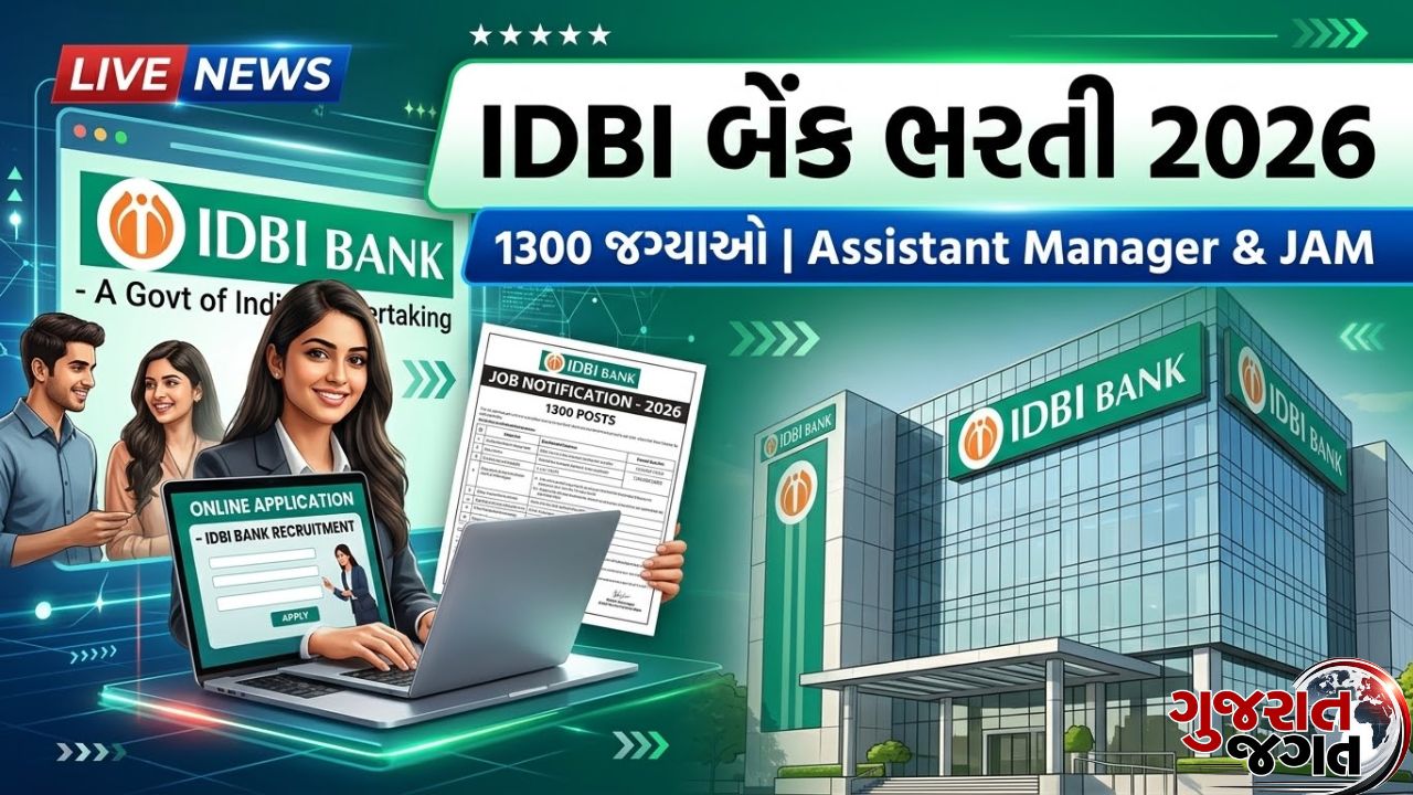 IDBI Bank Recruitment 2026: 1300 જગ્યાઓ માટે ભરતી, Assistant Manager અને Junior Assistant Manager પોસ્ટ માટે અરજી શરૂ